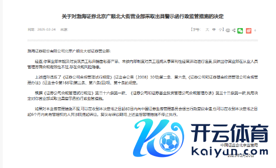 除总部业务受罚外,渤海证券北京广顺北大街证券买卖部近期亦因合规问题被责令整改。2月24日北京监管局走漏的一份文献高慢,渤海证券买卖部存在职工暗自销售私募家具等问题。经查,该买卖部未能实时发现职工暗自销售私募家具,且未按轨制对职工违章从事谋利性当作追责,反应出从业东说念主员治理失效。监管指出,其步履违背《证券公司合规治理试行律例》及《证券公司和证券基金投资治理公司合规治理宗旨》磋商律例,决定对其取舍出具警示函的行政监管步履。