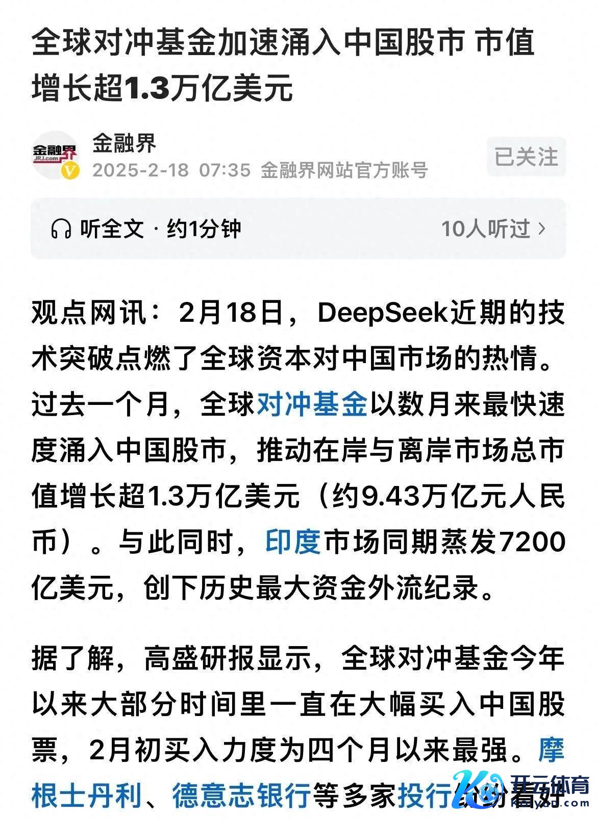 往日几年,中国股市的施展一直不冷不热,让不少东说念主凉了半截。但2025年,这一切皆变了。从客岁年底初始,港股和中概股的施展就像开挂了一样,涨幅直逼历史高点。2月初的一份高盛论说径直点名:中国股市成了众人对冲基金的新宠。