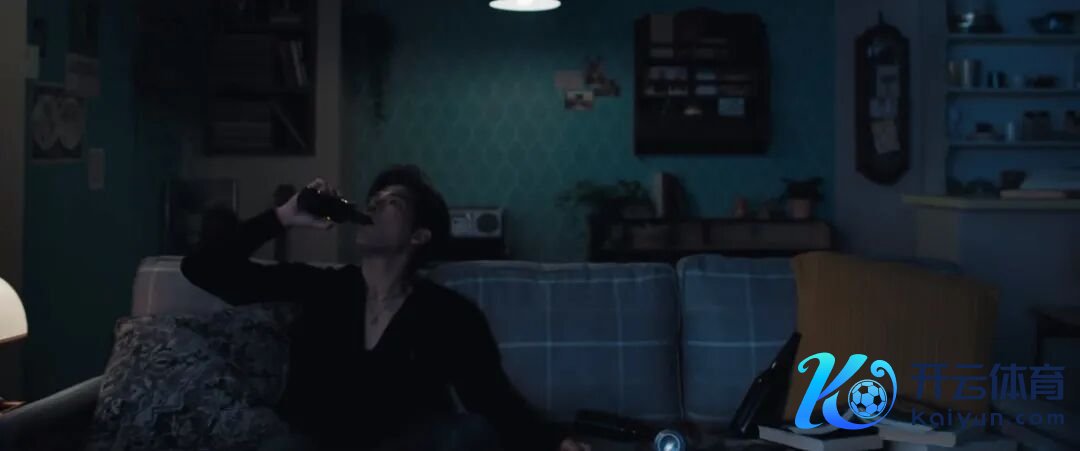 可明媚的画面跟着镜头推移蓦的变暗,也示意着他们之间的心扉出现了罅隙,阴暗的房间、堆满酒瓶的桌子、不再整洁的沙发、念念要借烟消愁的男主角和不解是以的女主角。