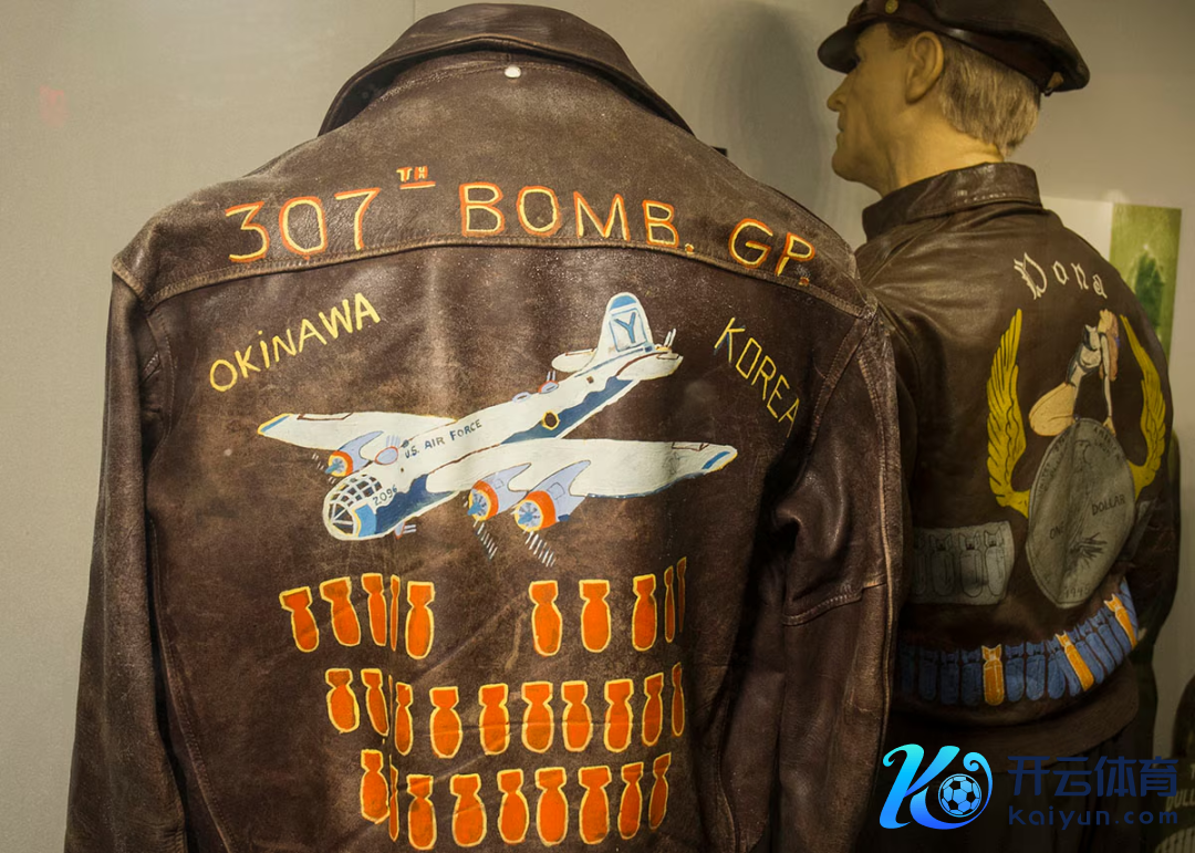 记号了番号、任务地点和投弹信息的一件好意思军二战夹克,不错看到是握政鲜半岛、冲绳(Okinawa)扩充对日作战。好意思国国度空军博物馆中保藏的其他二战遨游夹克,有部分还绘图了投弹当量、日历、经纬度等记念信息 | 图源:National Museum of the United States Air Force