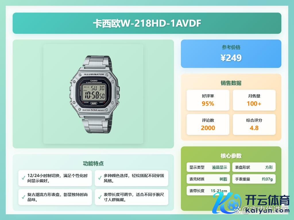 卡西欧电子腕表值得买吗?这问题问得好!说真话,卡西欧电子表在耐用性和实用性上一直都深切可以。若是你追求的是性价比,大略念念要一块安谧耐用、功能丰富的腕表,那卡西欧王人备可以研究。尤其目下市面上不少电子表筹画也挺前锋的,不会显得暮气。是以,要说值不值得买,我认为还是看个东谈主需乞降喜好,若是你的需乞降它匹配开云体育,那王人备是值得起始的。