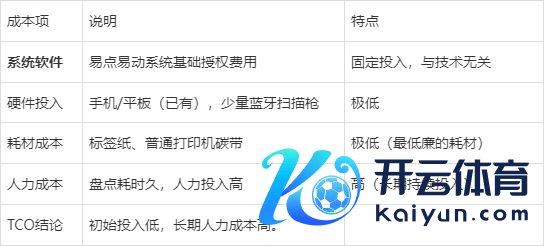 技艺选型必须接头总体领有老本(TCO - Total Cost of Ownership)。诚然RFID运行参加高,但永远来看,其从简的东说念主力老本和时候老本,可能会让TCO低于二维码。