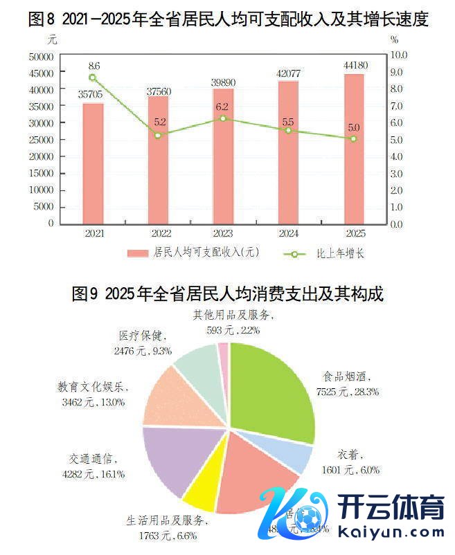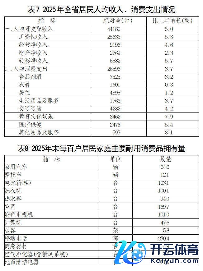 全年全省住户东说念主均可垄断收入44180元,比上年增长5.0%。其中,城镇住户东说念主均可垄断收入56444元,增长4.4%;农村住户东说念主均可垄断收入26613元,增长5.4%。全省住户东说念主均挥霍开销26596元,增长3.7%。其中,城镇住户东说念主均挥霍开销32561元,增长3.0%;农村住户东说念主均挥霍开销18053元,增长4.6%。