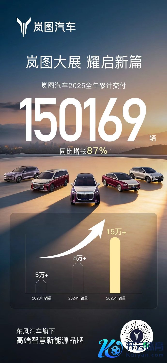 岚图汽车2025年累计委用15万辆,同比增长87%岚图汽车2025年累计委用15万辆,同比增长87%