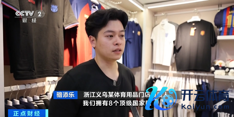 浙江义乌某体育用品门店清雅东说念主 骆添乐:咱们领有8个顶级国度队以及8个超等朱门俱乐部的全品类授权,举例雪柜贴、胸章、袖扣、徽章这些左右居品、记念品,还有毛绒玩物,咱们皆有在设备。